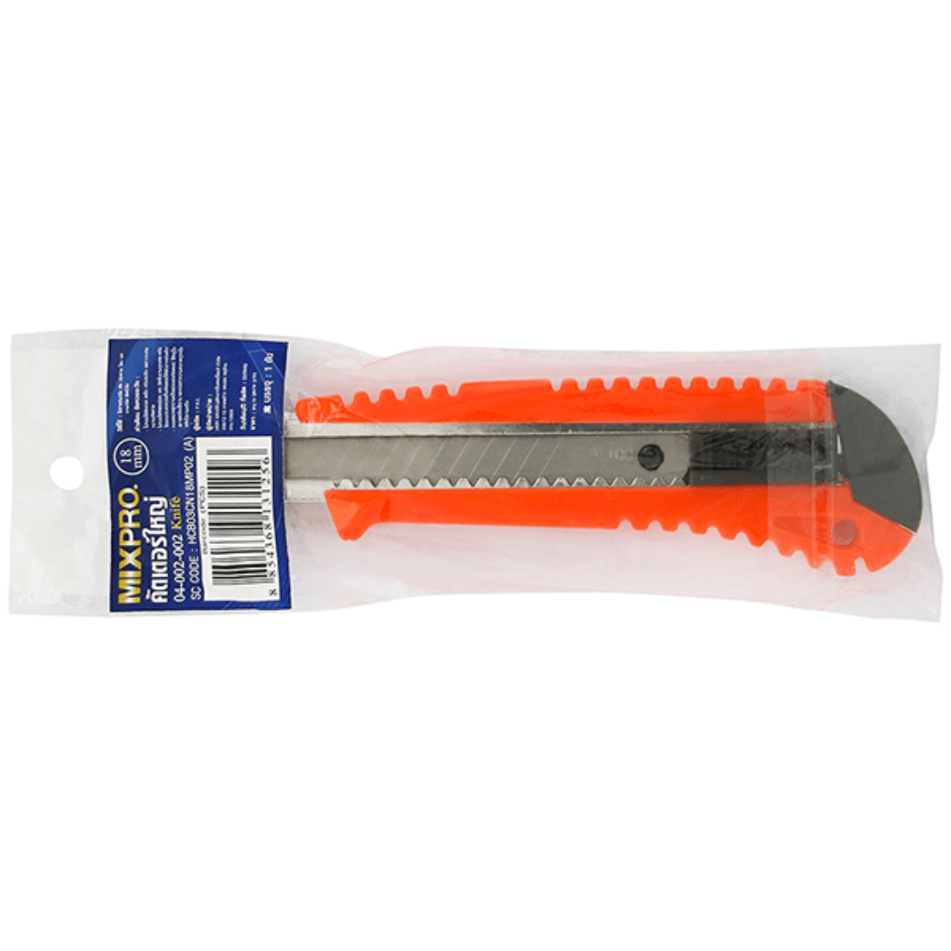 คุณสมบัติ ใบมีดคุณภาพดี มีความคมสูง และแข็งแรงทนทานต่อการใช้งาน ด้ามจับพลาสติกคุณภาพดี จับกระชับ และไม่ลื่นหลุดมือง่าย ผ่านกระบวนการผลิตด้วยเครื่องจักรที่ได้มาตรฐาน และทันสมัย ขนาด 18 มม. บรรจุ 1 อัน/แผง